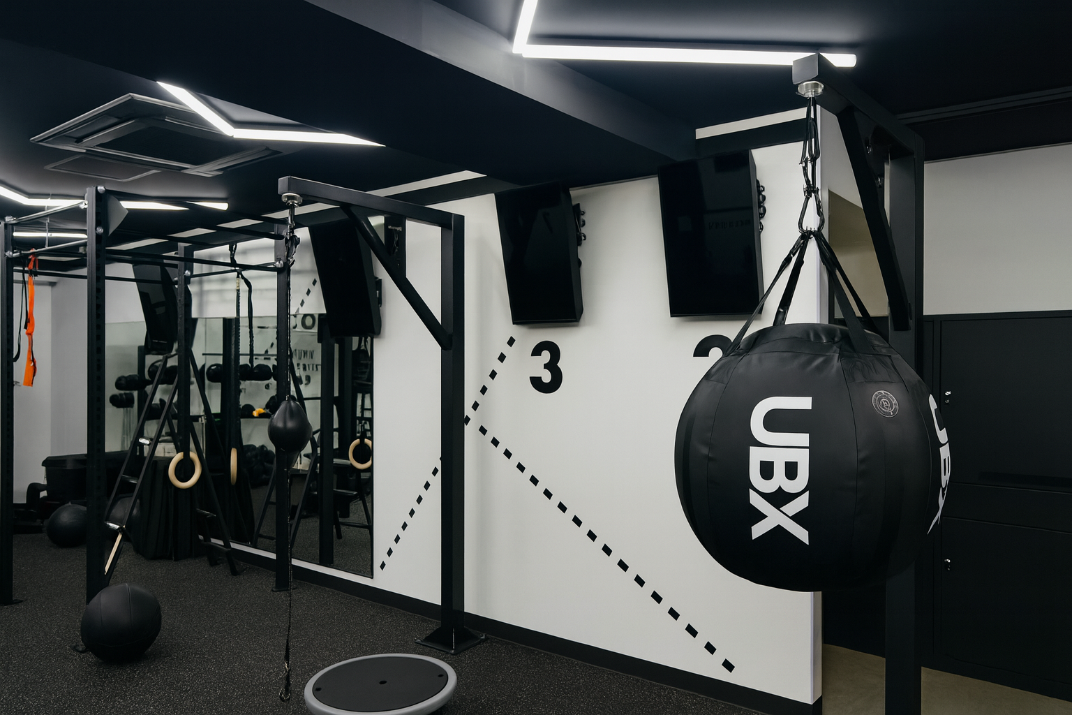 白と黒のコントラストを生かしたスタイリッシュな空間に、UBXブランドのメッセージが自然と溶け込むデザインに仕上げました。