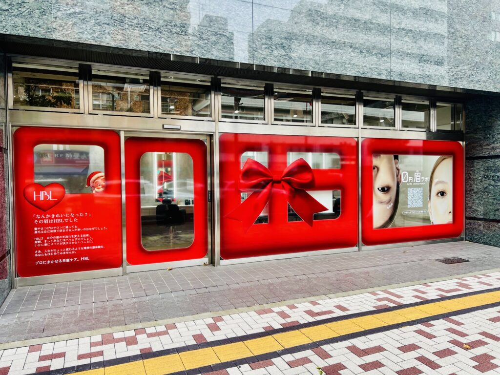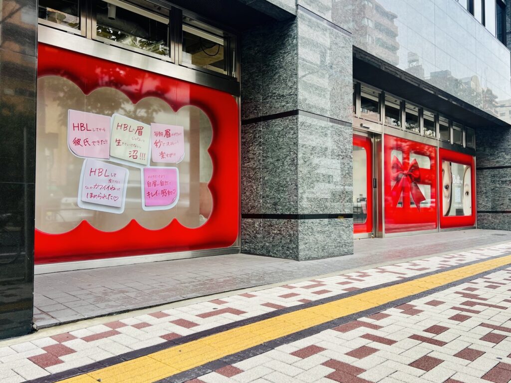 今回は、話題の眉ケアブランド HBL(ハリウッドブロウリフト) 様からご依頼をいただき、中目黒に期間限定オープンした 〈0円眉ラボ〉 のフルウィンドウラッピングの製作施工を行いました。
